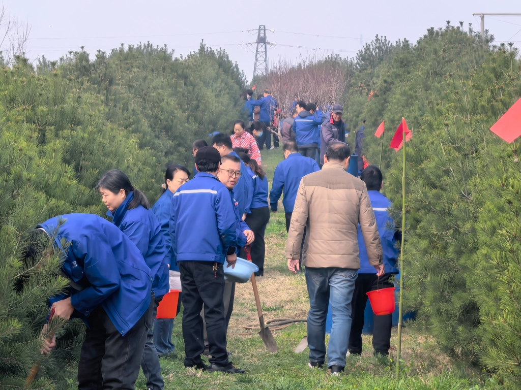 上午9时30分,百余名干部员工齐聚公司南区山坡,统一身着蓝色工衣,按照划定区域分工协作,有序对九年前集团员工亲手栽种的白皮松,开展施肥、驱虫、浇水等养护作业。活动现场暖意融融、干劲十足,全体参与人员以躬身实践传承植绿护绿初心,让绿色发展理念在时光的浇灌下愈发坚定,让昔日幼苗长成的参天绿树,成为企业生态文明建设的生动注脚。